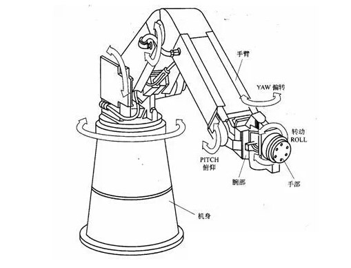 (3)臂部:用以連接機身和腕部,是支撐腕部和手部的部件,由動力關節和連桿組成。用以承受工件或工具的負荷,改變工件或工具的空間位置,并將它們送至預定位置。
