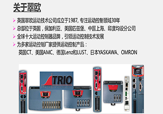 Trio的運(yùn)動(dòng)控制器、擴(kuò)展接口、I/O模塊和HMI系列觸摸屏的設(shè)計(jì)采用最少的外部組件達(dá)到對(duì)工業(yè)機(jī)械的控制。在許多的應(yīng)用中,Trio的控制器可以組合建立一個(gè)控制系統(tǒng),驅(qū)動(dòng)一個(gè)多軸機(jī)械及其自身的輔助設(shè)備。